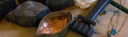 Evert Jan Halkus geeft demonstratie van restauratie kralen kransen.