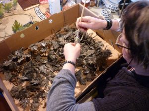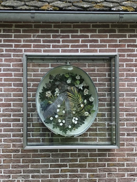 Het geheel is weer volledig geassembleerd en voorzien van een passend kleur. Het resultaat mag er zijn. Binnenkort zal ook dit kransje te zien zijn, naast de andere objecten, in het lijkenhuisje.