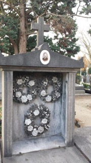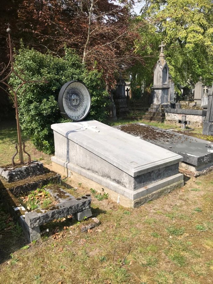 De twee graftrommels met kransen hebben op het graf van de Fam. Nizet gestaan bij het grafdeksel dat toegang gaf tot de er onderliggende kelder.
