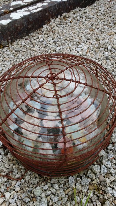Het waren metalen beschermkorven die over een soort glazen kaasstolp heen waren gezet.