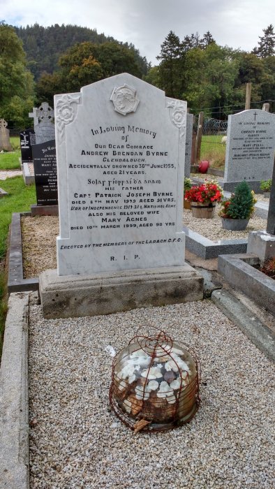 Afgelopen september waren mijn man en ik in Glendalough in Ierland. We liepen over het kerkhof en zagen daar 3 ”graftrommels”. Helaas erg verwaarloosd!