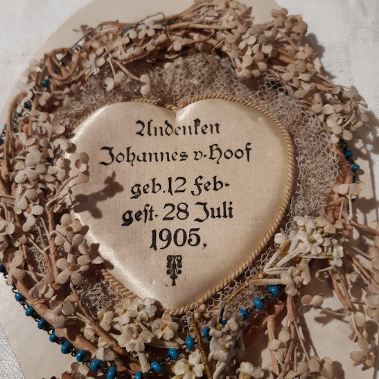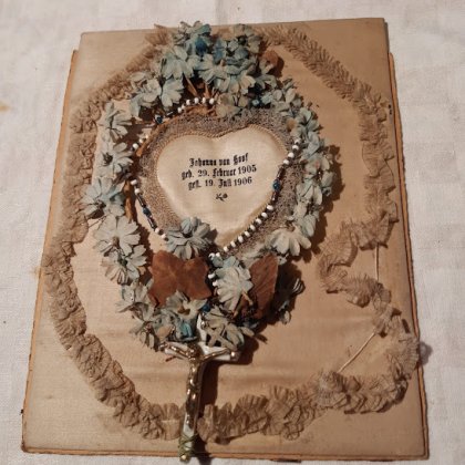 Het materiaal op de foto’s had ik al tig jaar in mijn bezit. Het zijn herinneringen aan de eerste twee kindjes van mijn oma en opa, die hoogstwaarschijnlijk begraven zijn geweest in Bocholt.